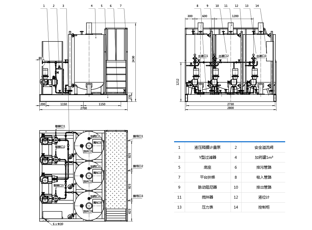 裝置具有結(jié)構(gòu)緊湊,體積小,耐腐蝕,耗能低,操作維護(hù)方便。有儲存藥劑,混合和外輸?shù)墓δ堋?/span>