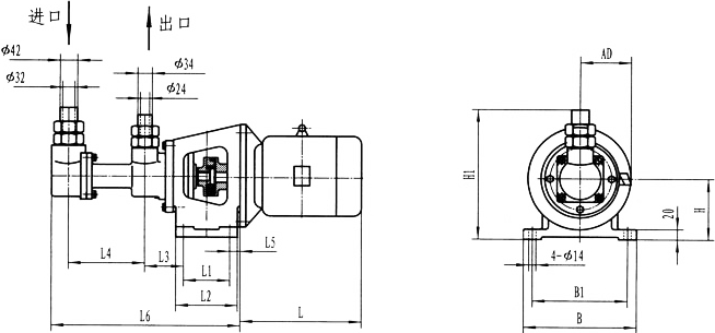 3GBW35,3GF35型法蘭式泵外形及安裝尺寸