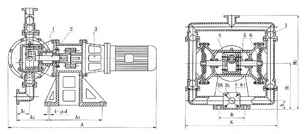根據(jù)不同介質(zhì),隔膜分為氯丁橡膠、氟橡膠、丁腈橡膠、四氟乙烯,完全可以滿足不同用戶的需要。過流部件也可根據(jù)用戶要求,分為鐵、不銹鋼、鋁合金,電機(jī)分為普通型和防爆型