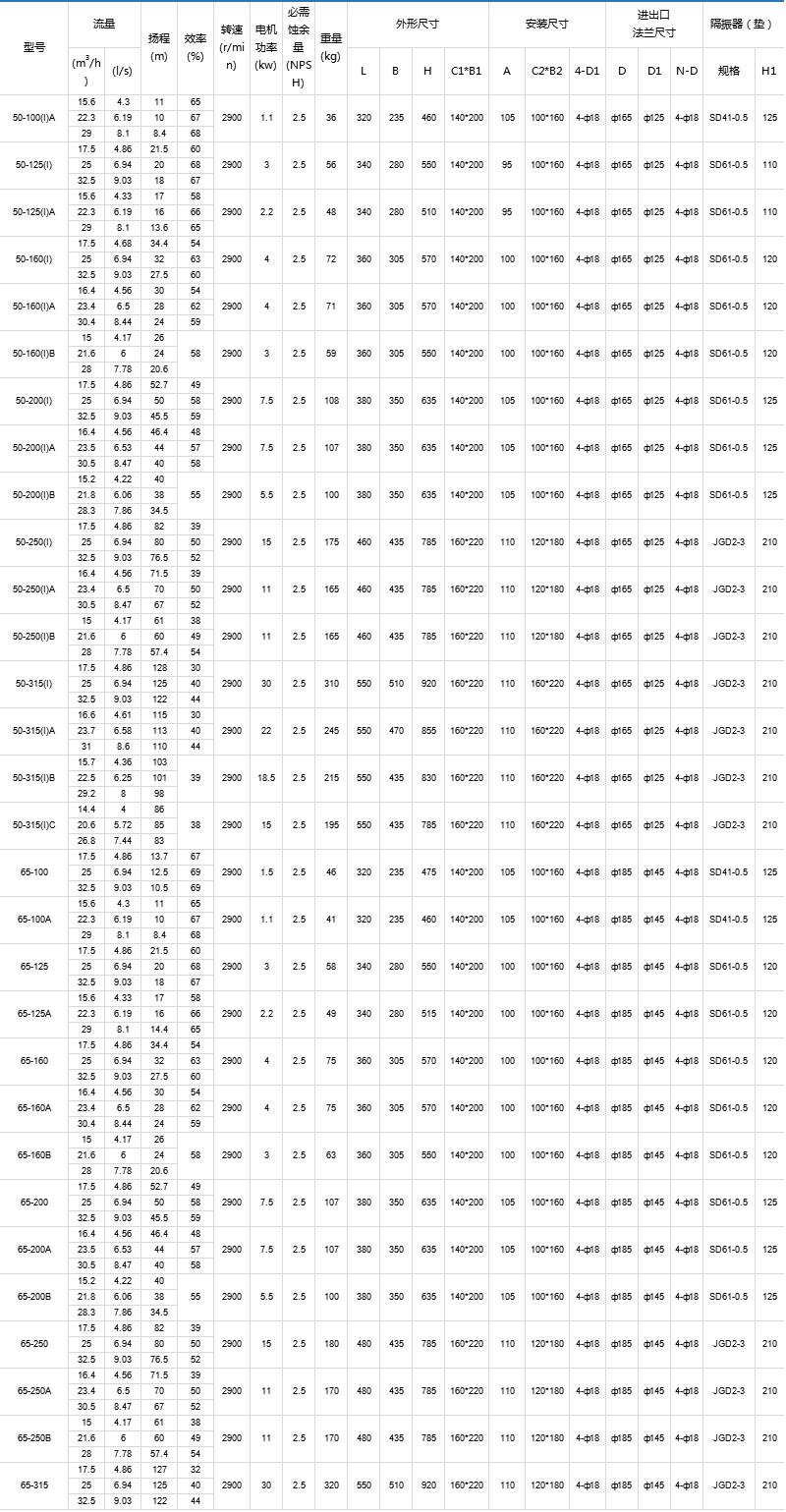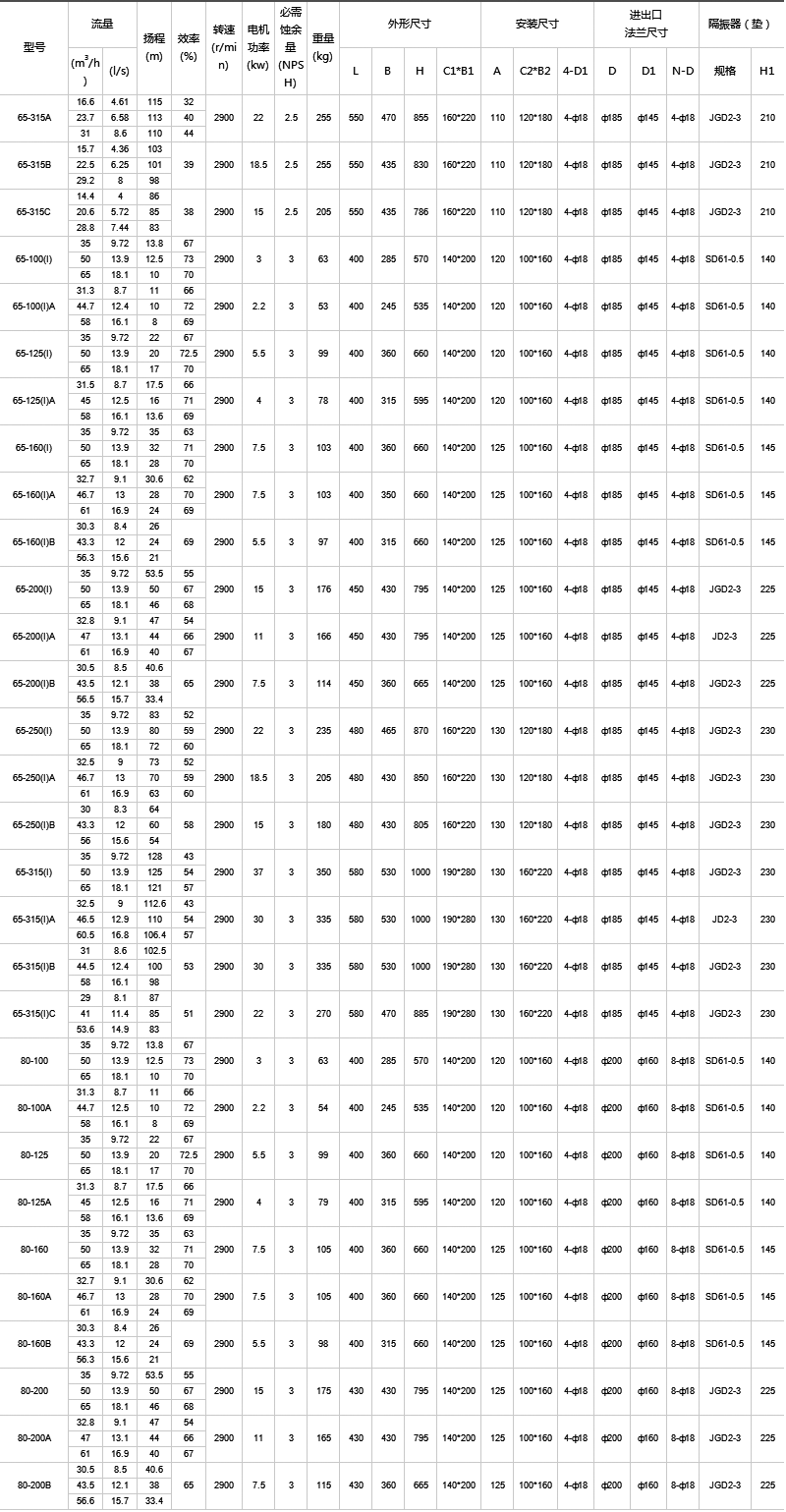 4、IHG型立式管道化工泵,供輸送不含固體顆粒,具有腐蝕性,粘度類似于水的液體,適用于石油、化工、冶金、電力、造紙、食品制藥和合成纖維等部門,使用溫度為-20°C~120°C。